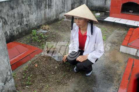 | Chị Duân bên bàn thờ chồng và 2 con |