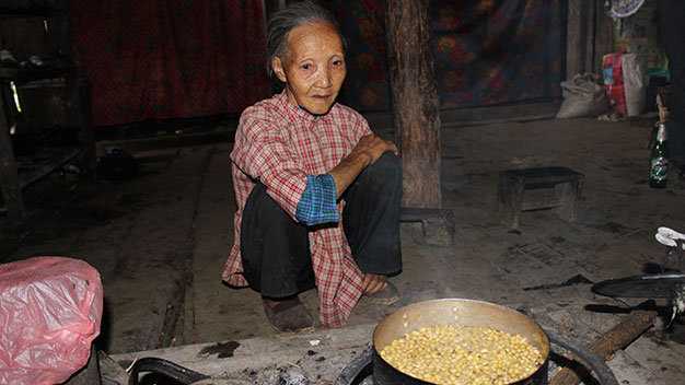 Tình trạng ăn ngô, đỗ tương một ngày ba bữa diễn ra tại hầu hết gia đình trong xóm. Bà Trương Thị Lèn, năm nay 70 tuổi, ngồi bên bếp lửa nấu nồi đỗ tương, nét mặt u buồn trò chuyện với chúng tôi bằng tiếng dân tộc Nùng.
