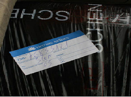 | Tem nhãn của hãng hàng không VietNam Airlines trên các thùng xốp chứa nội tạng |