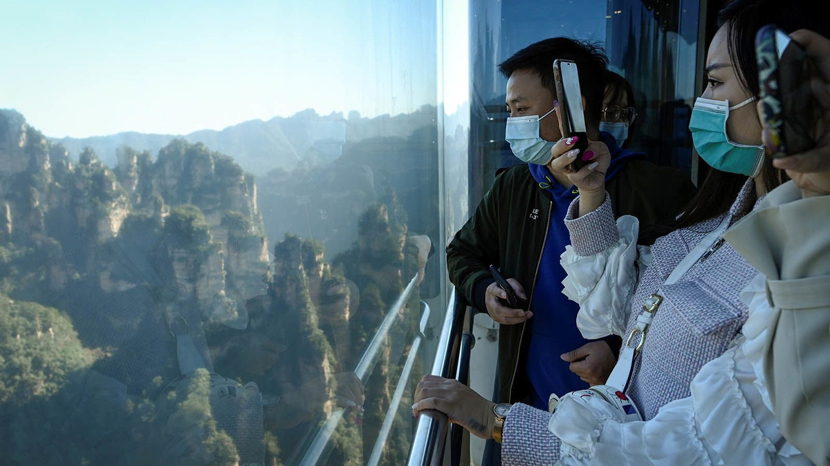 Thang máy Bách Long nằm tựa vào vách núi khổng lồ ở khu Vũ Lăng Nguyên. (Ảnh: CNN)