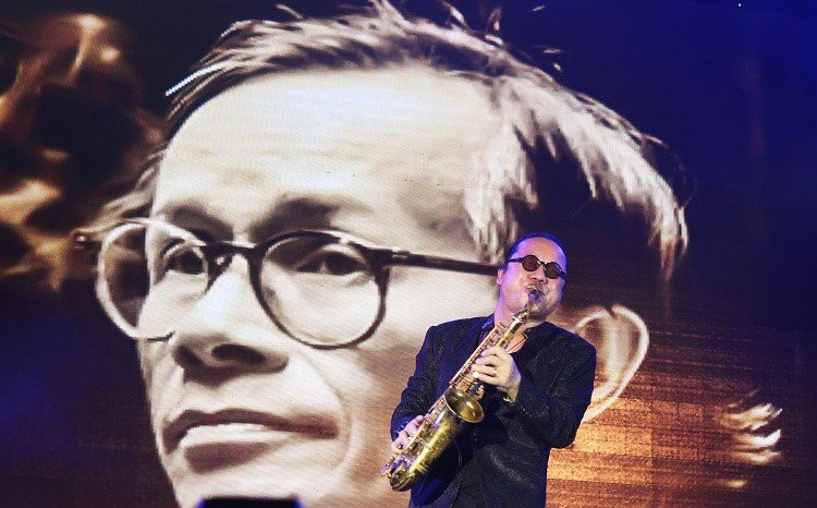 Nghệ sĩ Saxophone Trần Mạnh Tuấn biểu diễn tại đêm nhạc tưởng nhớ nhạc sĩ Trịnh Công Sơn tại Huế. (Ảnh: Trần Anh)
