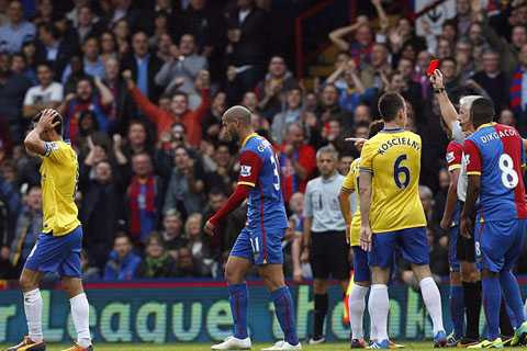Không lâu sau pha ghi bàn mở tỷ số, Arteta đã phải nhận thẻ đỏ trực tiếp khi phạm lỗi với người đồng đội cũ Chamakh trong một tình huống phản công. Điều đáng nói, tình huống này xảy ra cách khá xa khung thành của đội khách, và điều ấy khiến nhiều người cho rằng trọng tài chính đã quá nặng tay với tiền vệ người Tây Ban Nha.