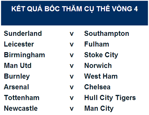 | Kết quả bốc thăm vòng 4 Capital One Cup (Nguồn: Goal) |