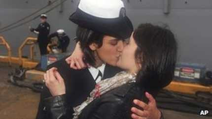 | Nụ hôn đồng giới đầu tiên trong một chuyến hồi hương của Hải quân Mỹ. |