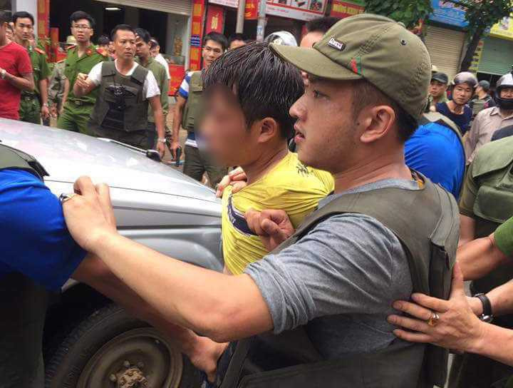 Hiện, nghi phạm đang được dẫn giải về trụ sở công an để phục vụ công tác điều tra.