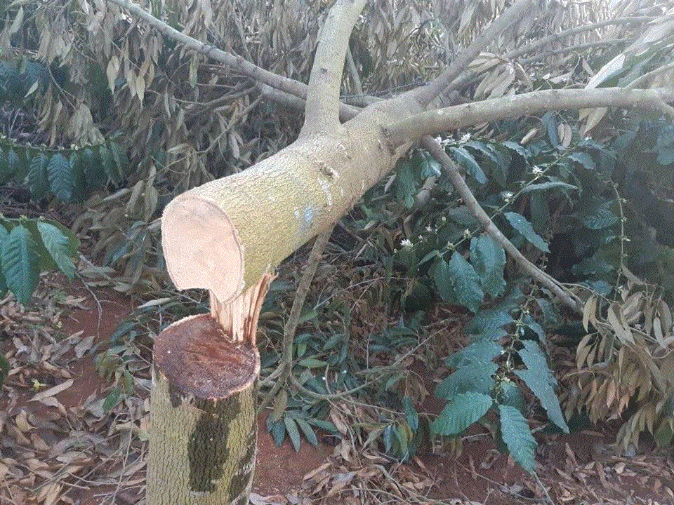 Hàng chục cây sầu riêng, cà phê bị phá hoại.