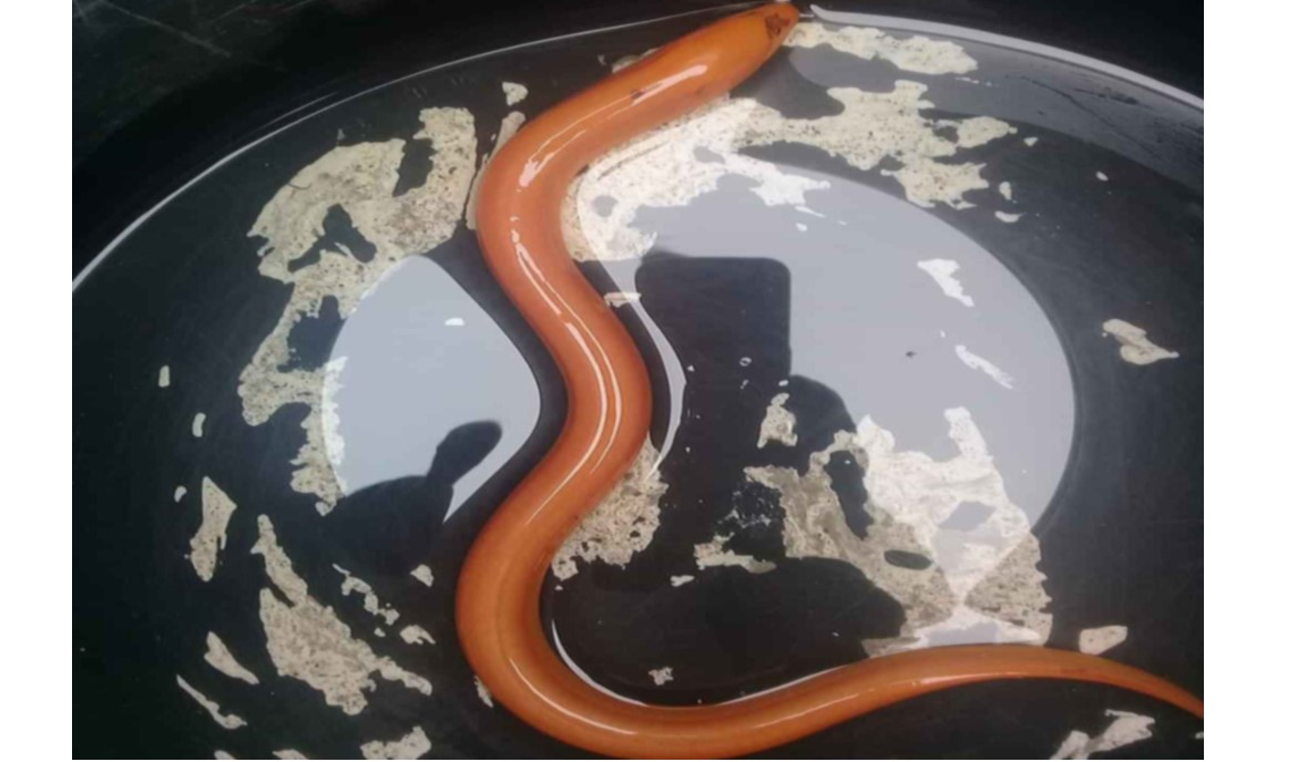 Con lươn anh Hóa bắt được có màu vàng óng độc đáo.