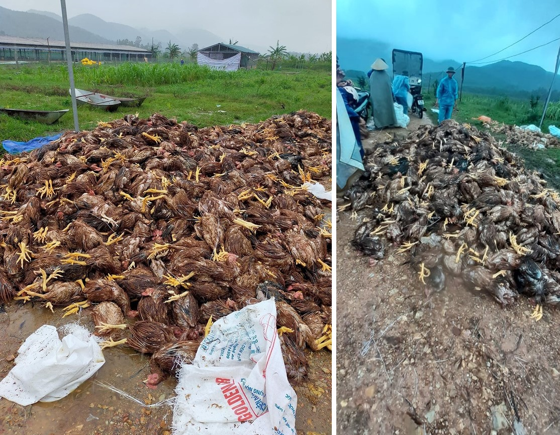 Tuy nhiên, chỉ sau một trận lũ, cả hai có nguy cơ mất trắng, thiệt hại hơn 1 tỷ đồng. "Khoảng 5h ngày 30/10, nước lũ dâng lên nhanh. Chỉ sau hơn 20 phút, nước ngập hết hai chuồng gà. Hơn 10.000 con gà nhà tôi đã chết", anh Nhường cho biết.