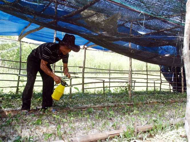 | Ông Bríu Pố chăm sóc vườn ươm ba kích |
