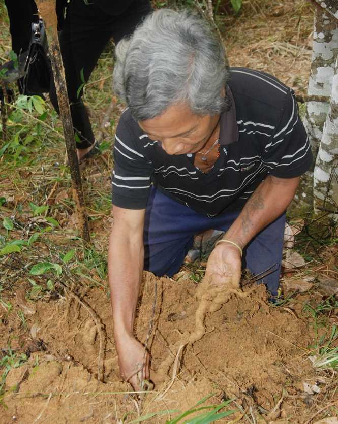 Theo ông Pố, giờ kể lại chuyện đưa ba kích về trồng nghe đơn giải lắm, còn ngày trước ông lên rừng cắt từng cây ba kích dài khoảng 30-60cm đem về trồng không ít người bảo ông là người điên, người khùng.