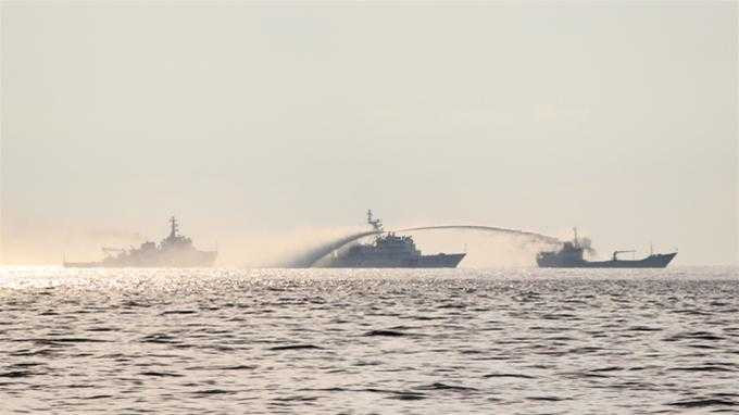 | Hình ảnh tàu Trung Quốc phun vòi rồng tấn công tàu kiểm ngư Việt Nam vào ngày 28-5 - Ảnh: My Lăng/TTO |