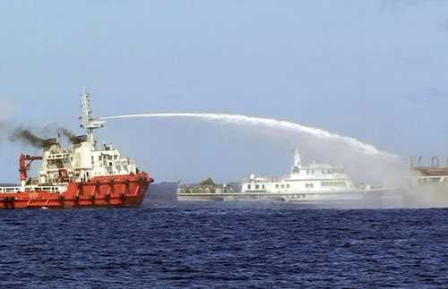 | Tàu Trung Quốc tấn công tàu Việt Nam bằng vòi rồng. Ảnh: AP |