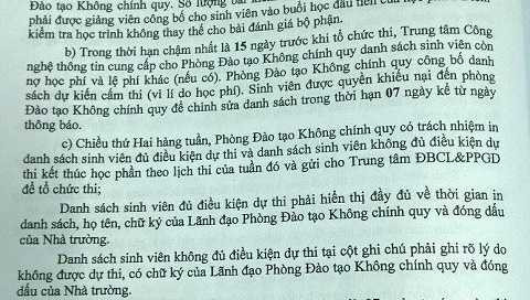 "Chúng tôi cũng đã từng kiến nghị vụ việc lên Ban giám hiệu, tuy nhiên việc quyết định hay không là do Hiệu trưởng. Các phòng ban phải nghiêm túc thực hiện theo chỉ đạo của Hiệu trưởng. Trước đây theo quy định sinh viên phải đóng học phí trước khi thi 2 tuần, nhưng sau này rút xuống còn 7 ngày, như vậy học viên nào đóng sau 7 ngày là không có trong danh sách thi, bị cấm thi", thầy Quang nói.