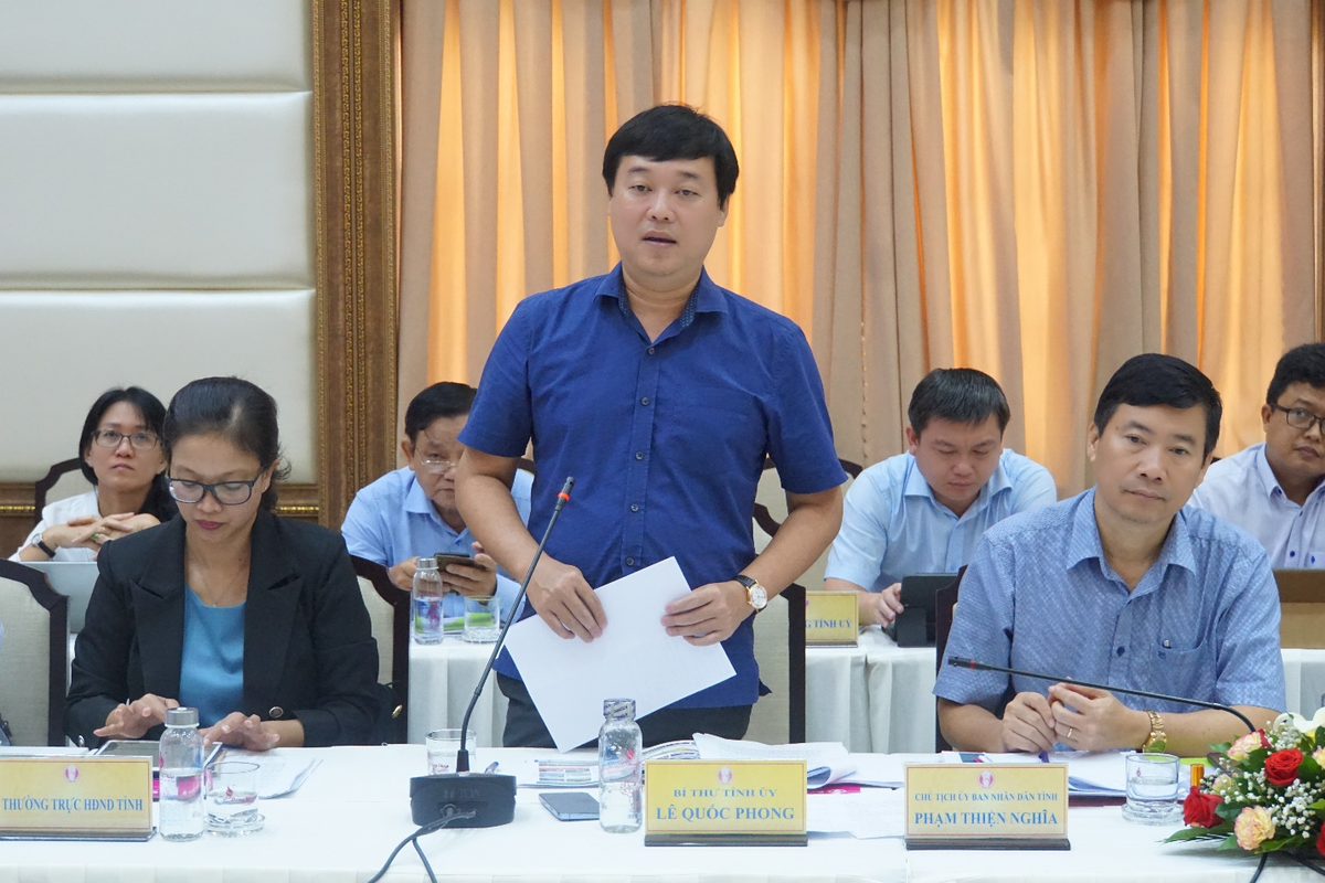 Ông Lê Quốc Phong, Ủy viên Trung ương Đảng, Bí thư Tỉnh ủy Đồng Tháp phát biểu tại cuộc họp.