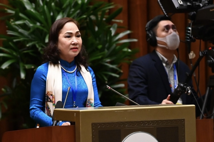 NSND Thuý Mùi, Ủy viên Ủy ban toàn quốc Liên hiệp các Hội Văn học nghệ thuật Việt Nam, Chủ tịch Hội Nghệ sĩ sân khấu Việt Nam, phát biểu tham luận tại Hội nghị văn hóa toàn quốc