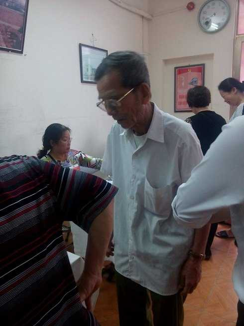 | NSƯT Trần Hạnh cẩn thận kiểm tra lại phiếu cử tri trước khi đi đến điểm bầu cử |