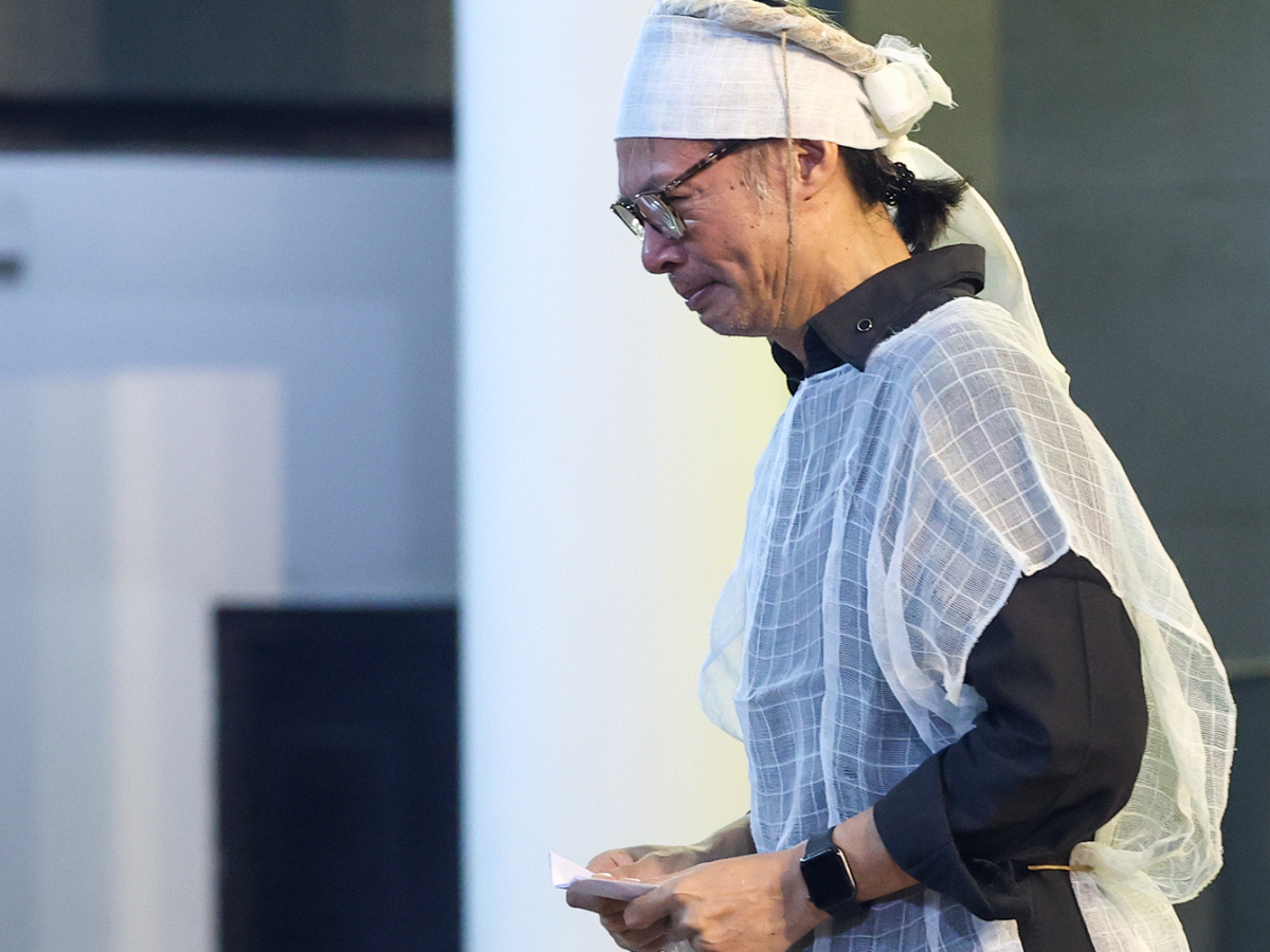 Đại gia đình của NSND Trần Bảng cúi đầu tiễn biệt ông trước lúc di quan.