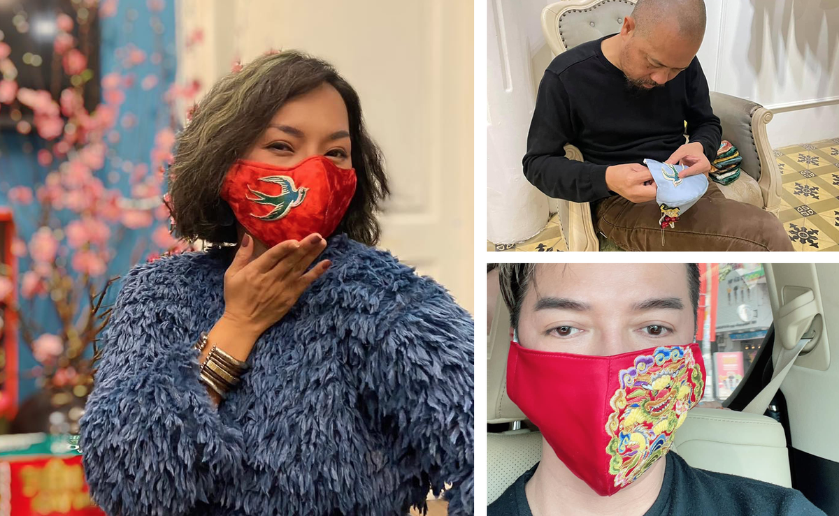 Ca sĩ Minh Quân khoe được nhà thiết kế Đức Hùng tặng đến mấy chiếc khẩu trang được anh may thêu cầu kỳ.