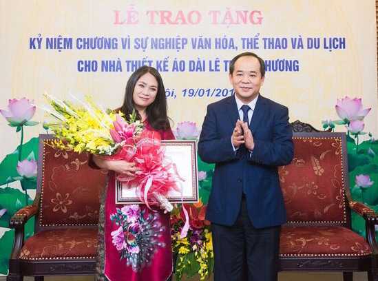 (VTC News) - NTK áo dài Lan Hương được Bộ Văn Hóa – Thể thao và Du lịch trao kỷ niệm chương “Vì sự nghiệp văn hóa – thể thao – du lịch Việt Nam”.