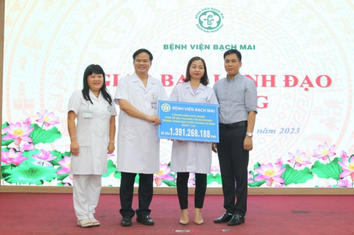 Bệnh viện Bạch Mai đã trao gần 1,4 tỉ đồng ủng hộ gia đình bác sĩ Nhung.