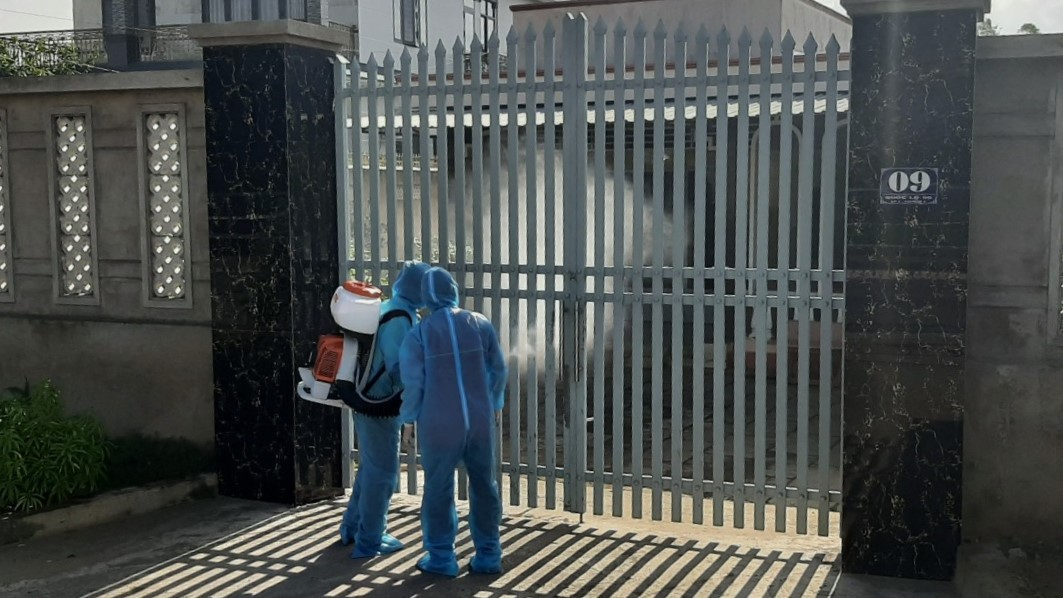 Nhà của bệnh nhân COVID-19 vừa qua đời được cơ quan y tế phun thuốc khử trùng trước đó. (Ảnh: C.T)