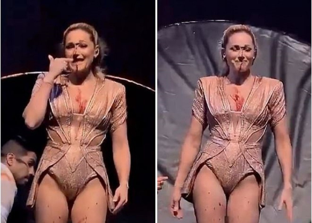 Helene Fischer bị rạch mặt, chảy máu đầm đìa trong lúc nhào lộn. Ảnh cắt từ video.
