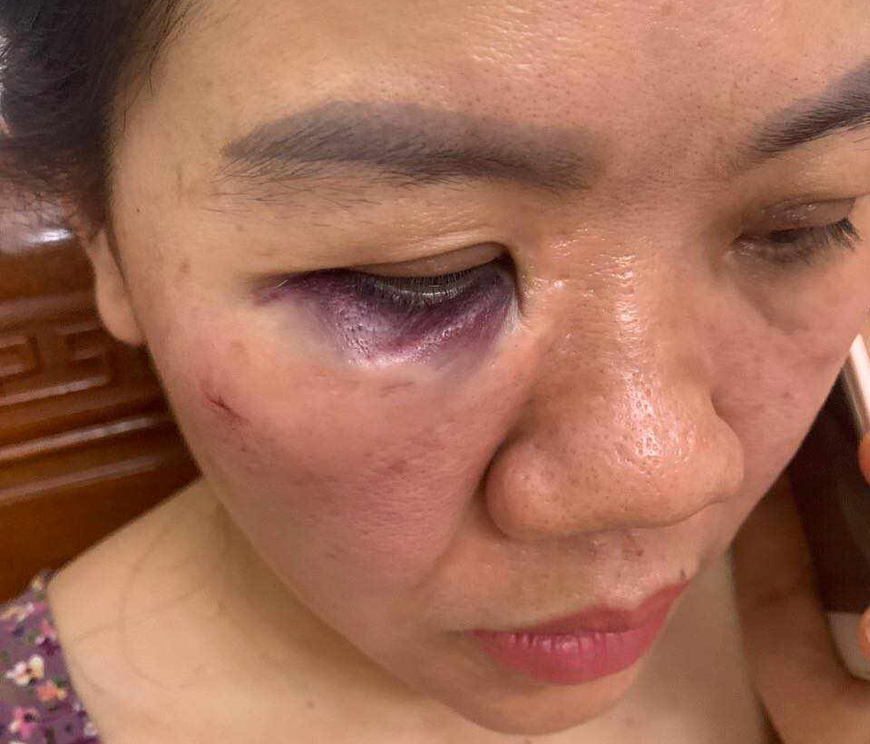 Chị H. bị đồng nghiệp hành hung dẫn đến thâm mắt. (Ảnh: CTV)