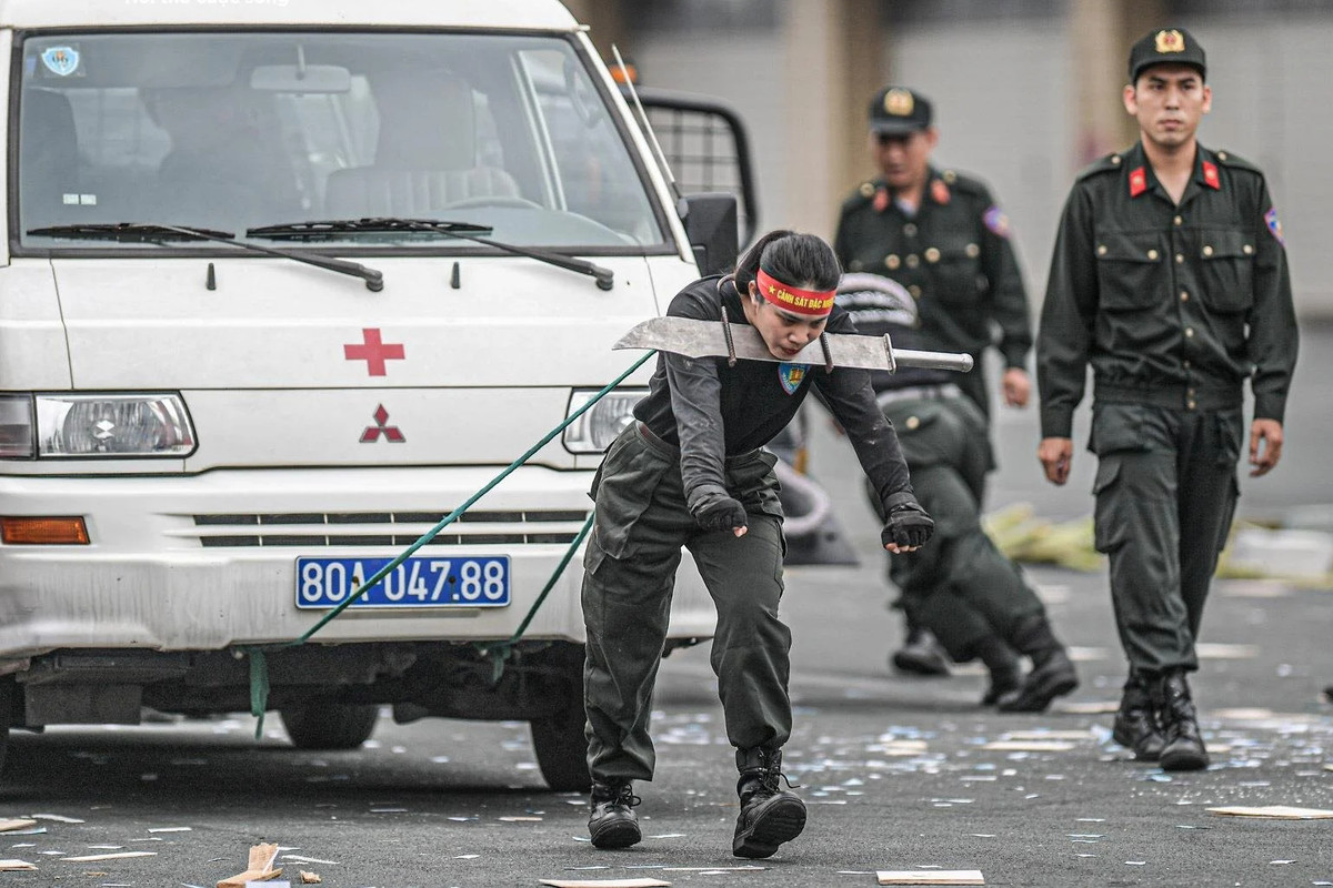 Phần biểu diễn võ thuật đối kháng của nữ chiến sỹ Cảnh sát đặc nhiệm thể hiện sự mưu trí, dũng cảm và ứng biến linh hoạt để giải quyết những tình huống xảy ra trong thực tế công tác.