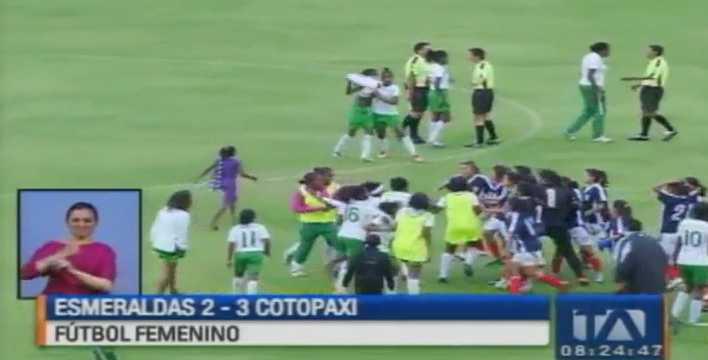 Các cầu thủ nữ Esmeraldas tại giải vô địch Ecuador sau khi thua ngược Cotopaxi đã bủa vây đánh trọng tài, đánh đối thủ và cả với những CĐV trên khán đài.