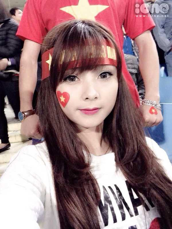 Ngô Lệ Quyên khiến hàng nghìn người liêu xiêu bởi vẻ ngoài dễ thương, xinh xắn khi cổ vũ đội tuyển Việt Nam trên khán đài.