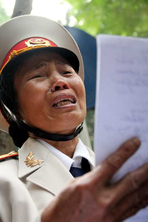 | Chị Loan khóc lên từng hồi, giọng nghẹn lại khi đọc bài thơ tưởng nhớ Đại tướng Võ Nguyên Giáp (Ảnh: Phạm Thịnh) |