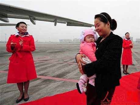 Cả hai bà mẹ đều được phục vụ tận tình trong suốt hành trình từ Thành Đô tới Bắc Kinh. Các đại biểu khác và những tiếp viên hàng không đã hỗ trợ họ rất nhiều trên chuyến bay. Ban tổ chức đã sắp xếp cho mỗi người một phòng lớn hơn phòng của các đại biểu khác tại khách sạn. Nhân viên y tế tại khách sạn cũng tới thăm nom hai bé hàng ngày.