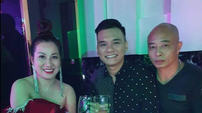 Nữ đại gia và chồng (bên phải) có mối quan hệ thân thiết với nhiều nghệ sĩ nổi tiếng.