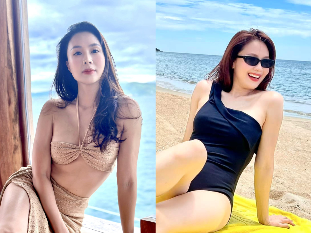Trước đó, người đẹp 40 tuổi cũng khoe dáng trong bộ áo tắm một mảnh tôn đường cong.
