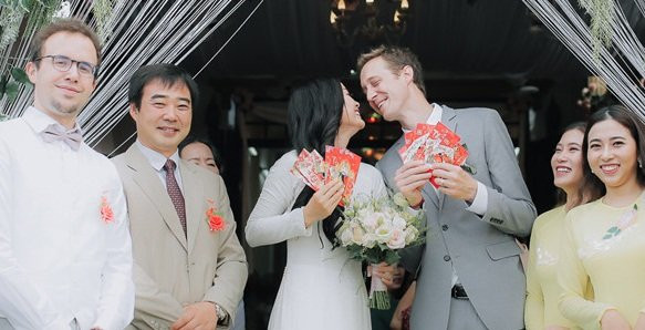 Gia đình và bạn bè chú rể tại Pháp cũng có mặt ở Quảng Trị trong ngày vui của Diệu Thúy và ông xã.