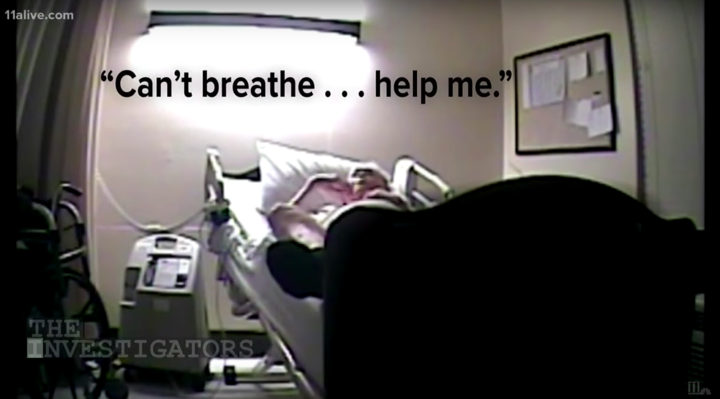 Ông James Dempsey, 89 tuổi được chăm sóc tại Trung tâm y tế và phục hồi Đông Bắc Atlanta vào tháng 2/2014. Video từ máy quay ẩn do người nhà đặt tại phòng bệnh cho thấy ông liên tục ấn nút gọi yêu cầu được giúp đỡ.