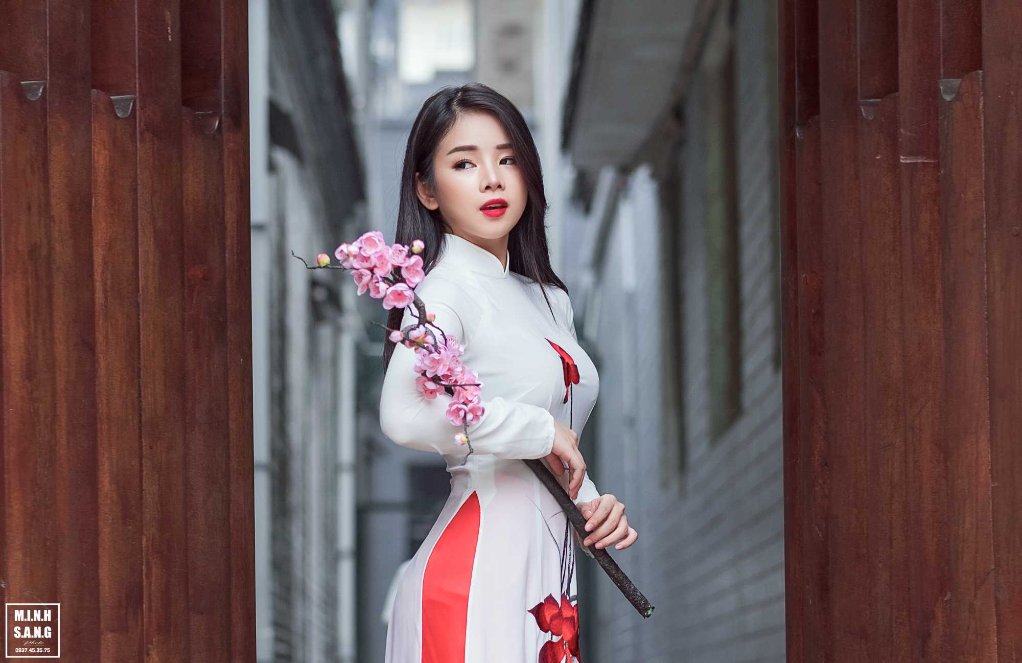 Cô bạn khoác lên mình trang phục dân tộc để để đi lễ chùa và thực hiện bộ ảnh cho thấy sắc xuân rực rỡ của mùa Tết năm Đinh Dậu.