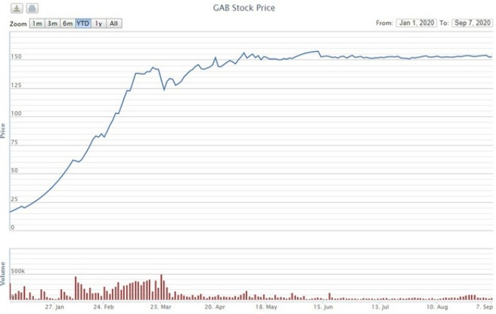 Niêm yết từ tháng 11/2019, cổ phiếu FLC GAB là một trong những hiện tượng của sàn chứng khoán năm nay khi thị giá tăng phi mã hơn 800%. Giá cổ phiếu hiện tại của FLC GAB là 152.700 đồng, cao gấp 9,4 lần so với vùng giá hồi đầu năm.