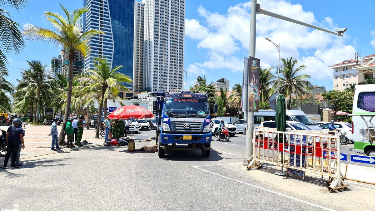 Trưa 7/8, các lực lượng công an quận Ngũ Hành Sơn, Đà Nẵng khám nghiệm hiện trường, điều tra nguyên nhân vụ tại nạn giữa xe tải và xe máy trên Võ Nguyên Giáp khiến nữ du khách chết tại chỗ.