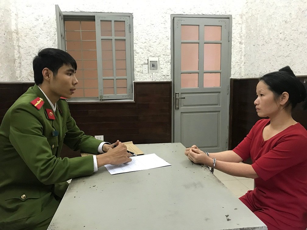 Trịnh Thị Thịnh tại cơ quan cảnh sát điều tra.