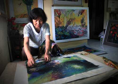 Nữ hoạ sỹ tuổi 74 biến vải vụn thành tranh