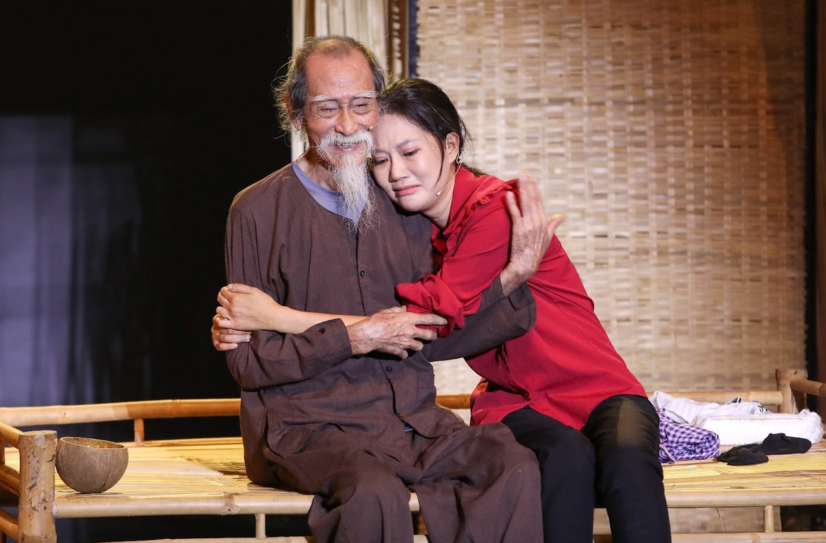 Khi hòa giọng cùng nhà giáo Mạnh Dung, MC Huỳnh Thơ không giấu được sự xúc động. Diễn xuất chân thật của cả hai đã lấy nước mắt người xem.
