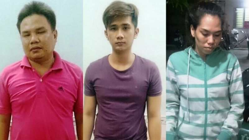 Các đối tượng tổ chức “chân dài” bán dâm và kích dục tại 2 cơ sở massage từ trái qua phải gồm: Trịnh Hữu Cường (chủ cơ sở), Nguyễn Nghiêm Nghĩa (quản lý) và Lê Thị Linh Phương (tiếp tân).