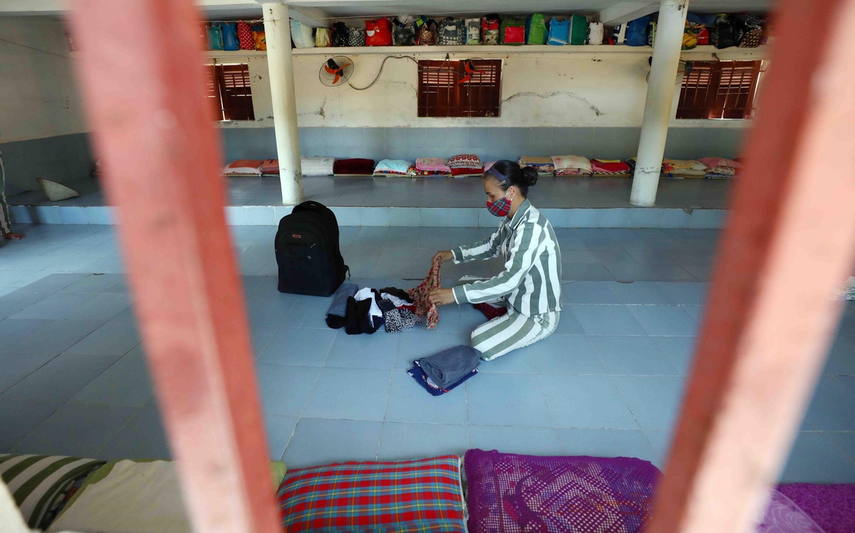 Nữ phạm nhân N.T.T. chuẩn bị tư trang để về với gia đình.