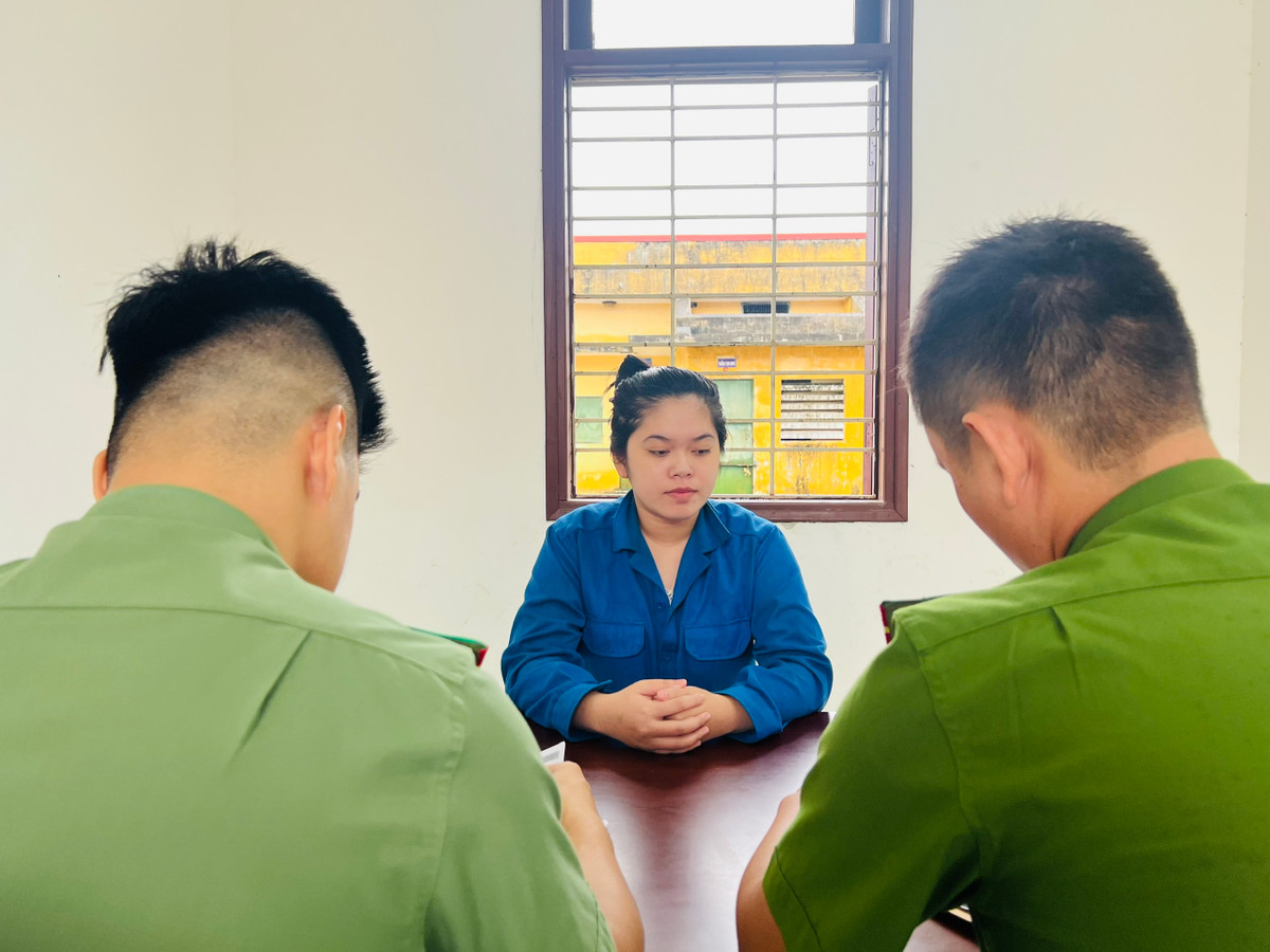 Cán bộ công an đang làm việc, lấy lời khai đối với Lê Thị Kiều Trang. (Ảnh: CACC)