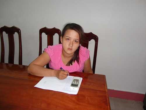 | Đối tượng Khưu Thị Bích tại cơ quan công an. |