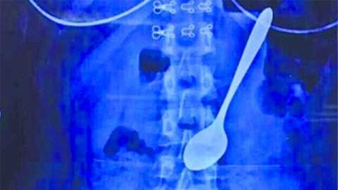 Tháng trước một phụ nữ Trung Quốc cũng phải nhập viện vì lỡ nuốt chiếc thìa dài 30cm vào cổ họng.