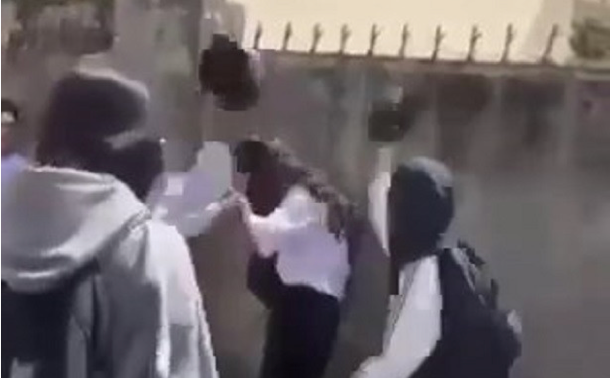 Trước đó, một số hội nhóm trên mạng xã hội truyền nhau đoạn clip dài hơn 1 phút ghi lại cảnh một nữ sinh mặc quần xanh áo sơ mi trắng, đeo khăn quàng, trên vai còn mang chiếc ba-lô bị một nhóm nữ sinh khác dùng mũ bảo hiểm đánh tới tấp.