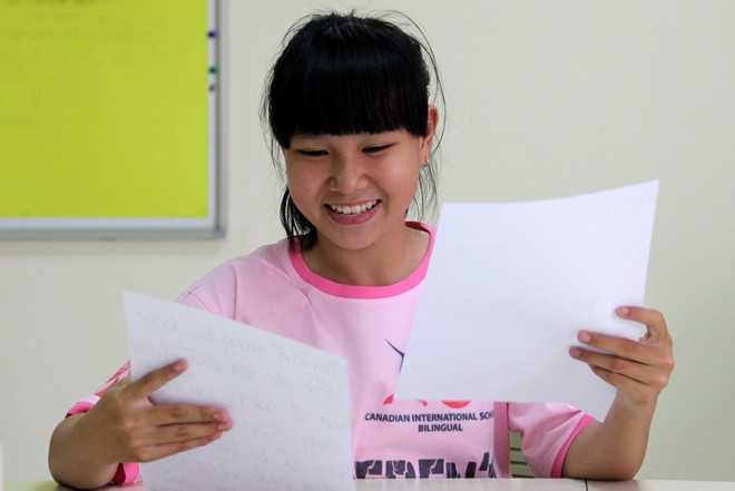 Ngày 20/3, trường Quốc tế Canada tại TP.HCM cũng tổ chức sự kiện này, em Hồng Phương, nạn nhân trong vụ bạo hành ở Trà Vinh cũng tham dự. |