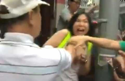 | Ảnh một nữ sinh biểu tình bị một người đàn ông quấy rối |